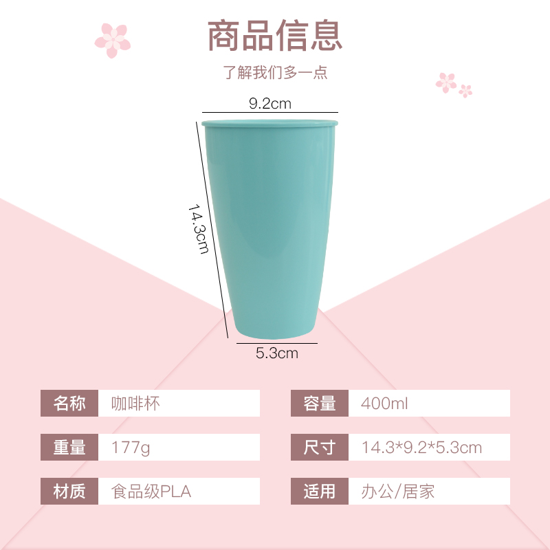 产品名称:400毫升硅胶盖双层PLA咖啡杯