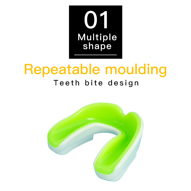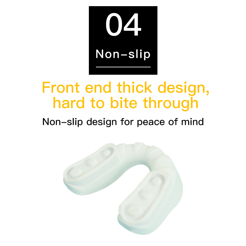 The teeth design mouth guard by human oral structure design which is toxic-less and tasteless,it helps the wearers protect their mouth effectively and no breathe barrier when they close their mouth.