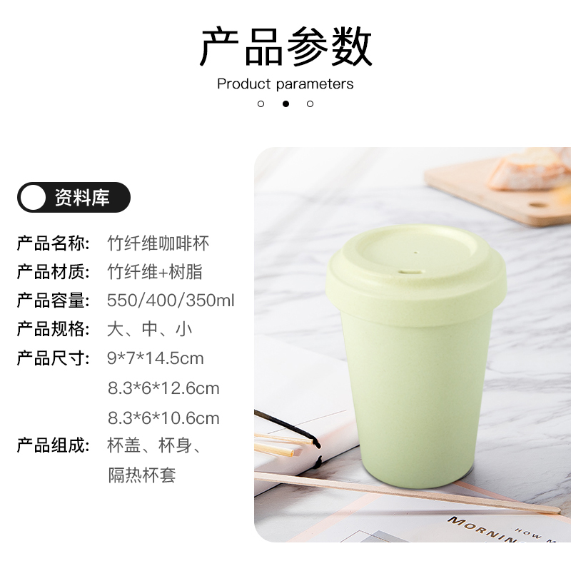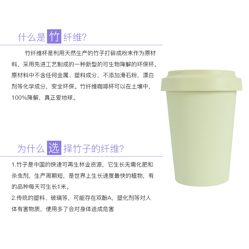 1. 竹纤维材料杯,耐用,可生物降解。