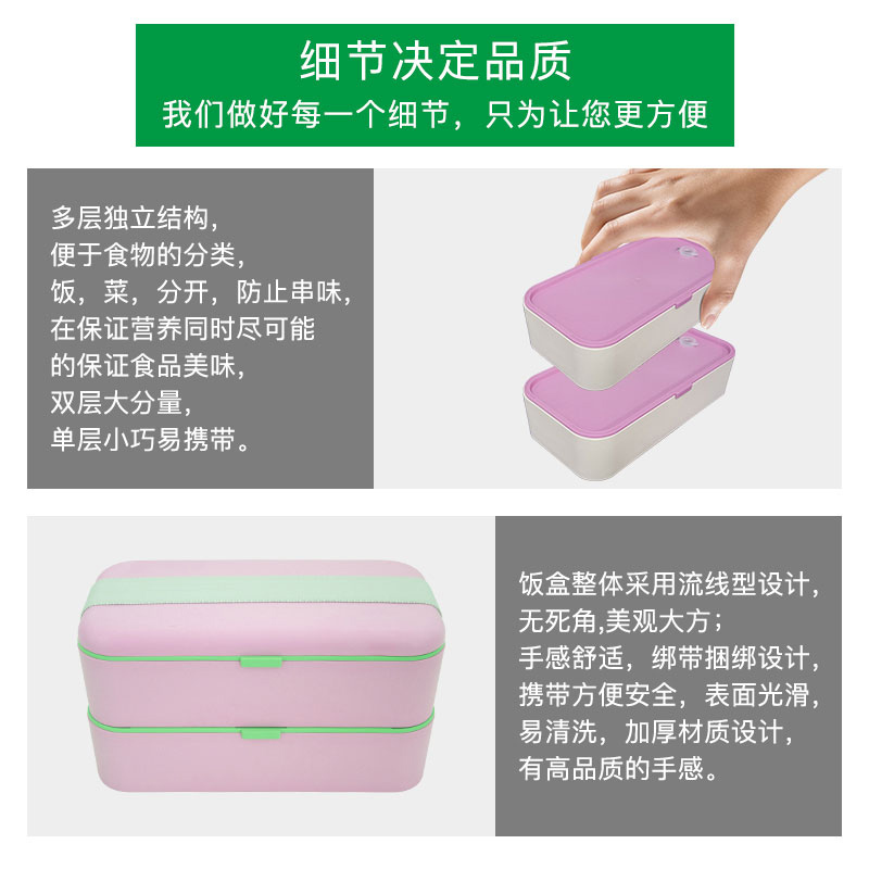 3.为了满足人们的多样化需求,饭盒采用防漏设计理念,是盛装汤和粥的最好选择;而且饭盒底部还增加了防粘功能设计,便于清洗。
