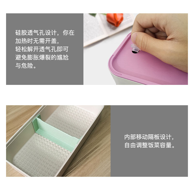 4.硅胶透气孔的设计,不仅可以防止食物流出,同时也可以尽快释放饭盒内部的水蒸气。