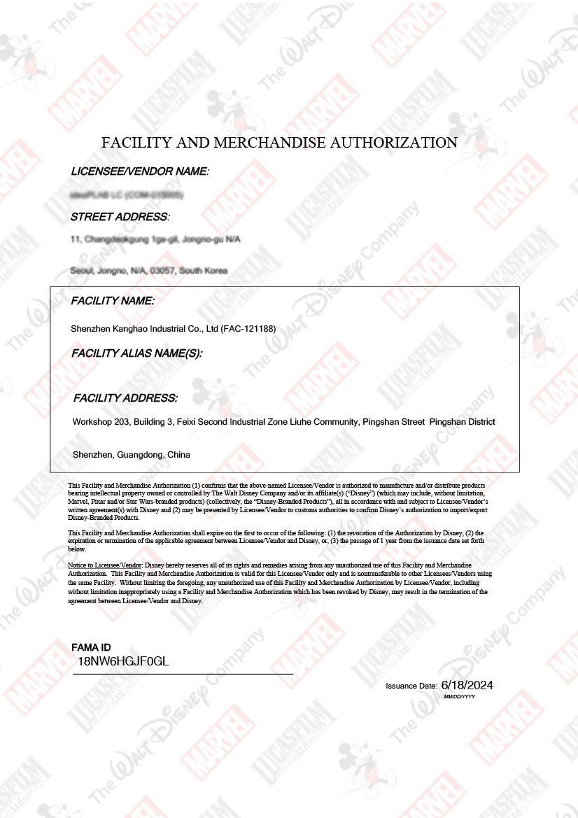 Walt Disney FAMA certification approved KangHao